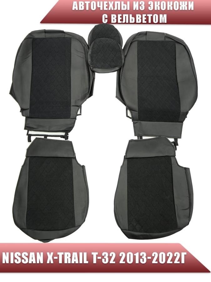Авточехлы Nissan X-Trail Ниссан Х-Трейл 2013-2022г кузов T32 черный вельвет черная нить ромб