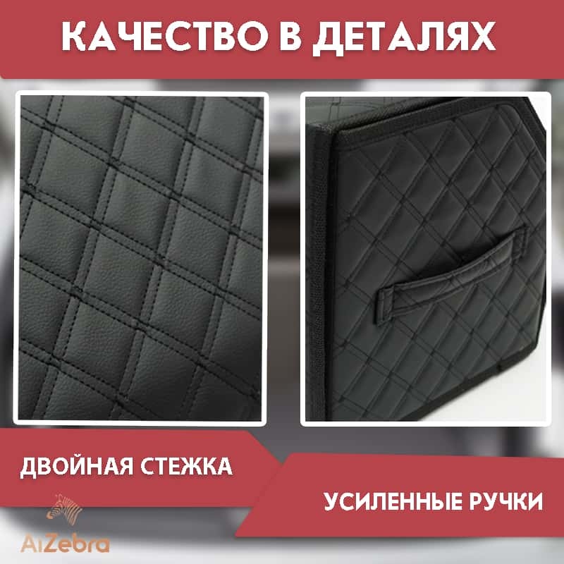 C2R Органайзер багажника кофр экокожа черный с черной ниткой 70x30x30см
