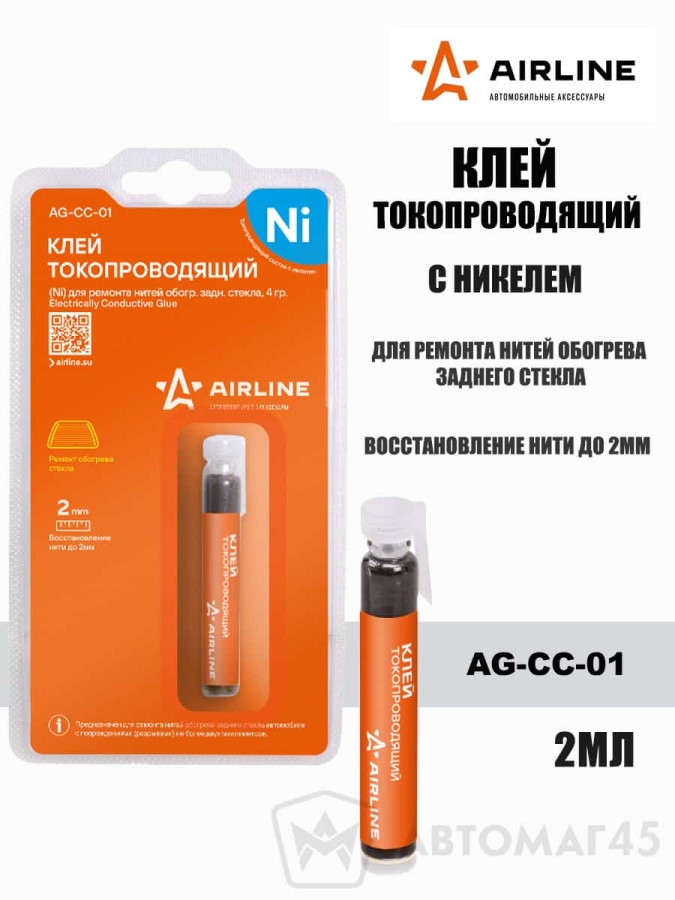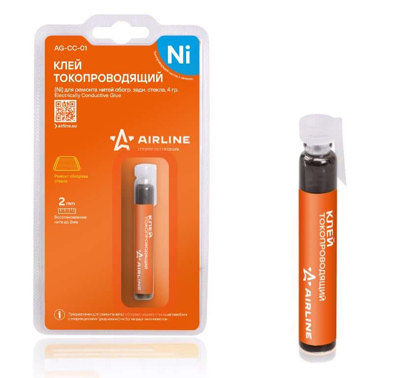 Airline клей для ремонта нитей обогрева заднего стекла c никелем токопроводящий 2мл