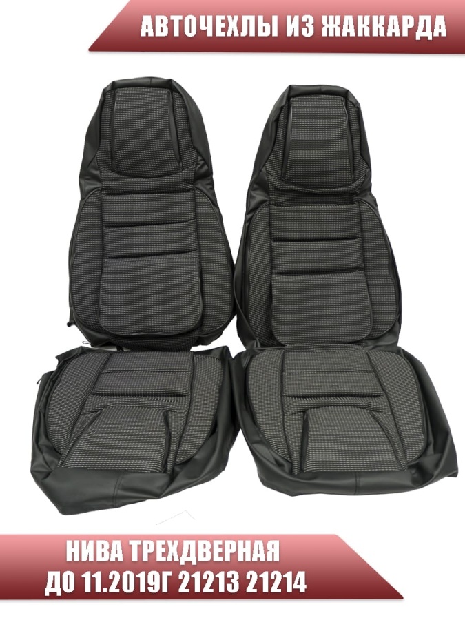 Авточехлы Нива трехдверная до 11.2019г 21213 21214 жаккард черно-серый