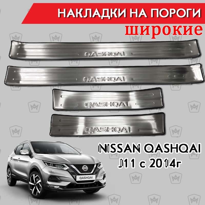 Накладки на внутр пороги Nissan Qashqai Ниссан Кашкай J11 2013-2022г широкие алюминий 4шт