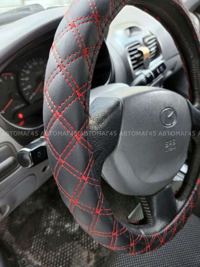 C2R оплетка руля кожа черная двойной ромб красная нитка размер 37-39см М С504R