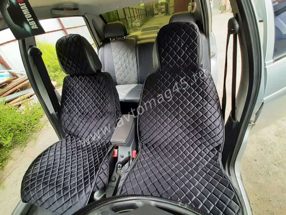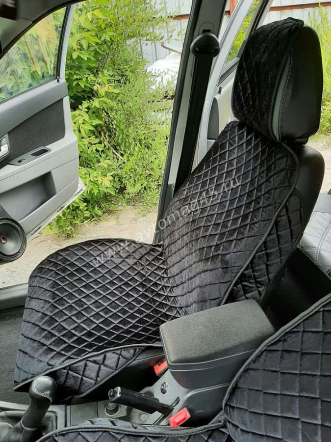 Гелакси Накидки на сиденье универсальные велюр передние черные с боками с черной ниткой 1шт