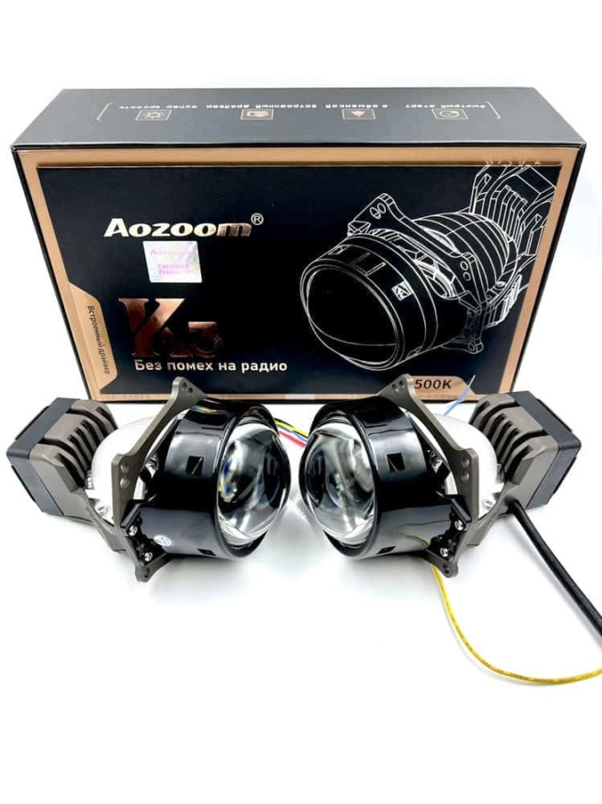 Aozoom K3 2022 светодиодные Би-Led линзы 3.0" 12V 50W 5500K 4200Lm 2чипа 2рефлектора гарант 12 мес