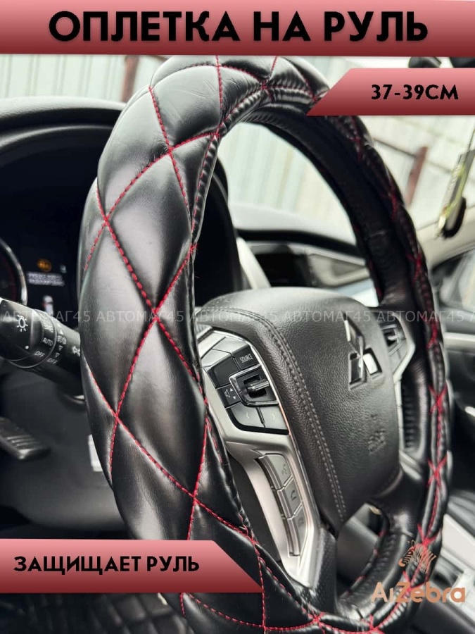 Maximal оплетка руля кожа черная ромб красная нитка размер 37-39см R-01-BLRD