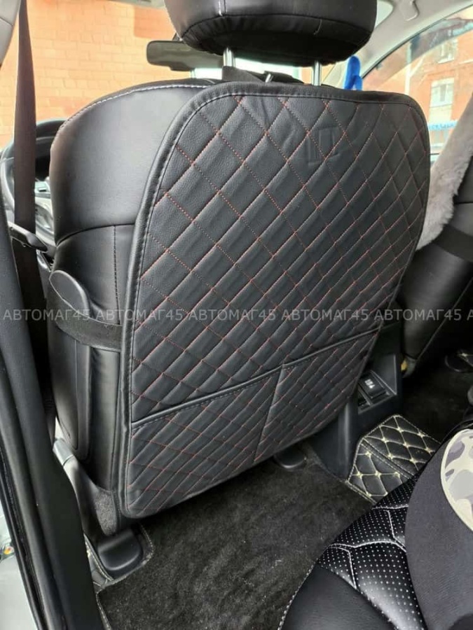 Maximal Защита заднего сиденья с карманом экокожа черная с красной ниткой ромб соты 62х49см