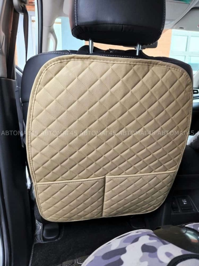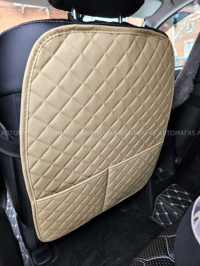 Maximal Защита заднего сиденья с карманом экокожа бежевая с бежевой ниткой ромб соты 62х49см