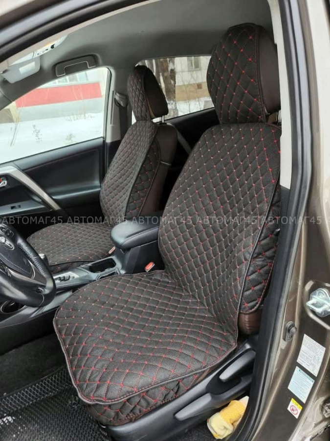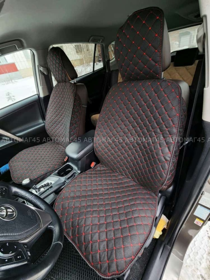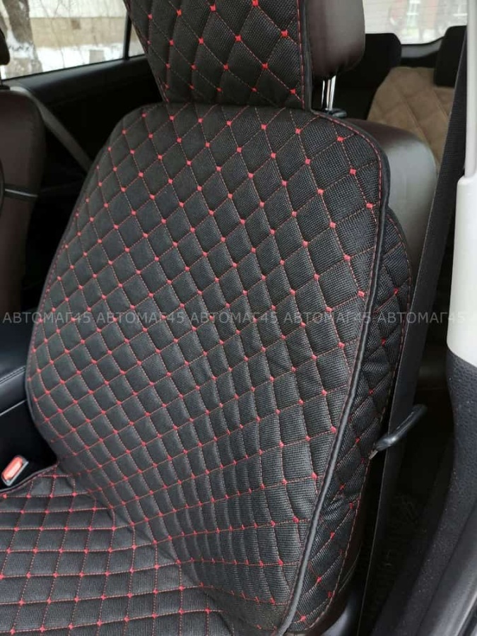 Чехлы накидки на сиденье лен 2Д черный с красной ниткой передние 2шт LEX Light
