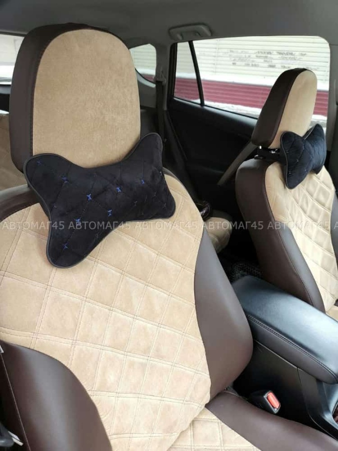 Maximal Подушка косточка под шею велюр черная с синей ниткой 26х19см 1шт