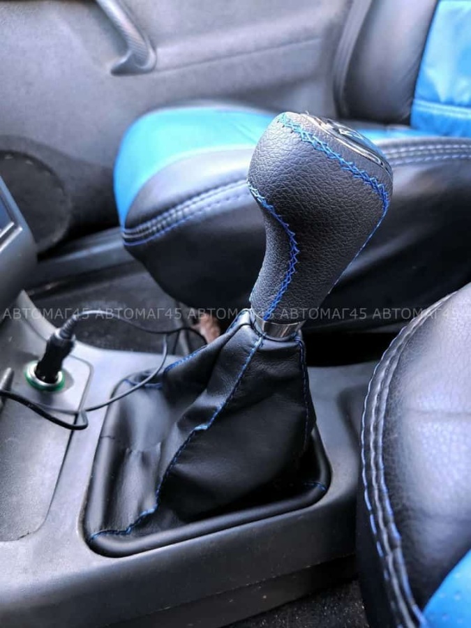 SALMAN Ручка КПП ВАЗ 2110 2111 2112 под КПП 2110 черный с синей ниткой в сборе хром