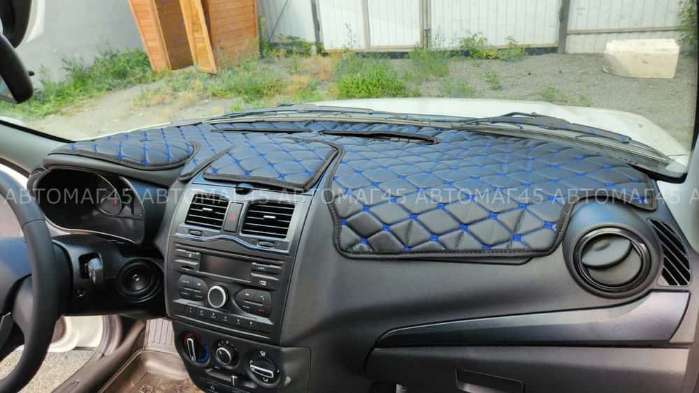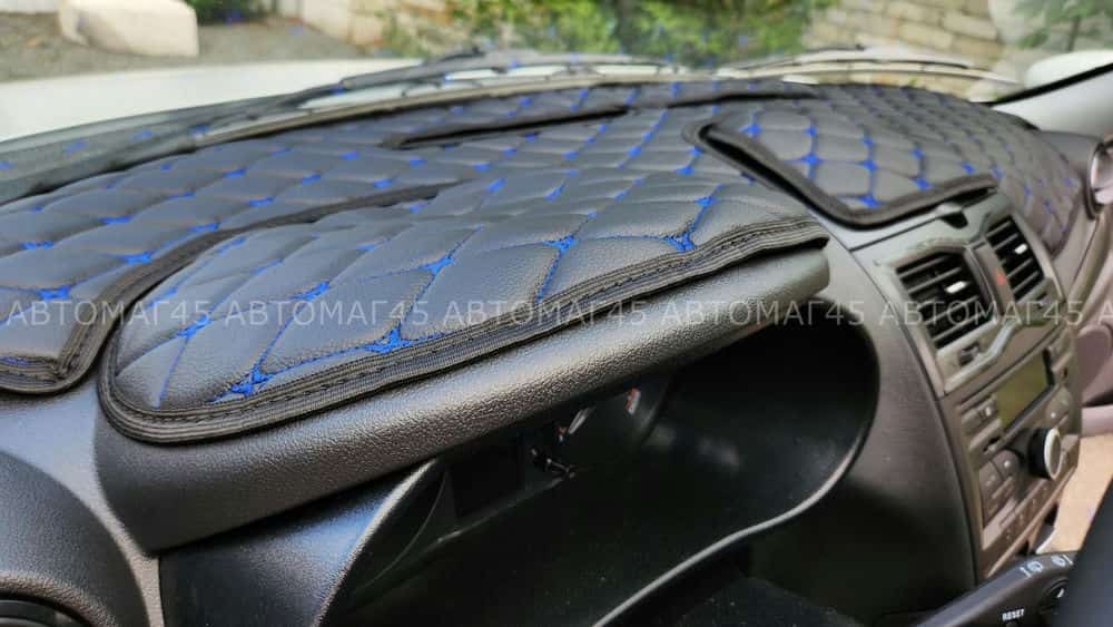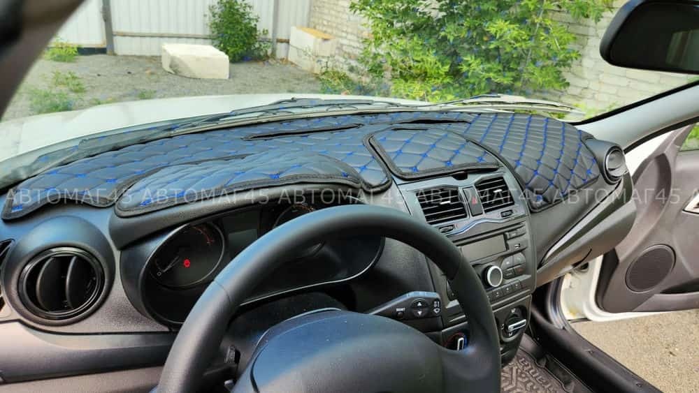 Накидка на панель Lada Granta Гранта FL с 2018г Lada Kalina Калина 2 с 2013г с синей ниткой экокожа