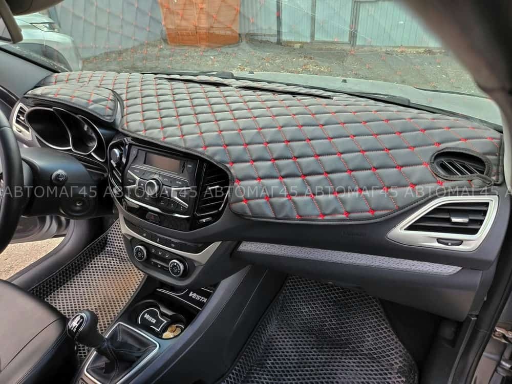 Накидка на панель Lada Vesta седан Веста Lada SW Vesta SW Cross с красной ниткой экокожа