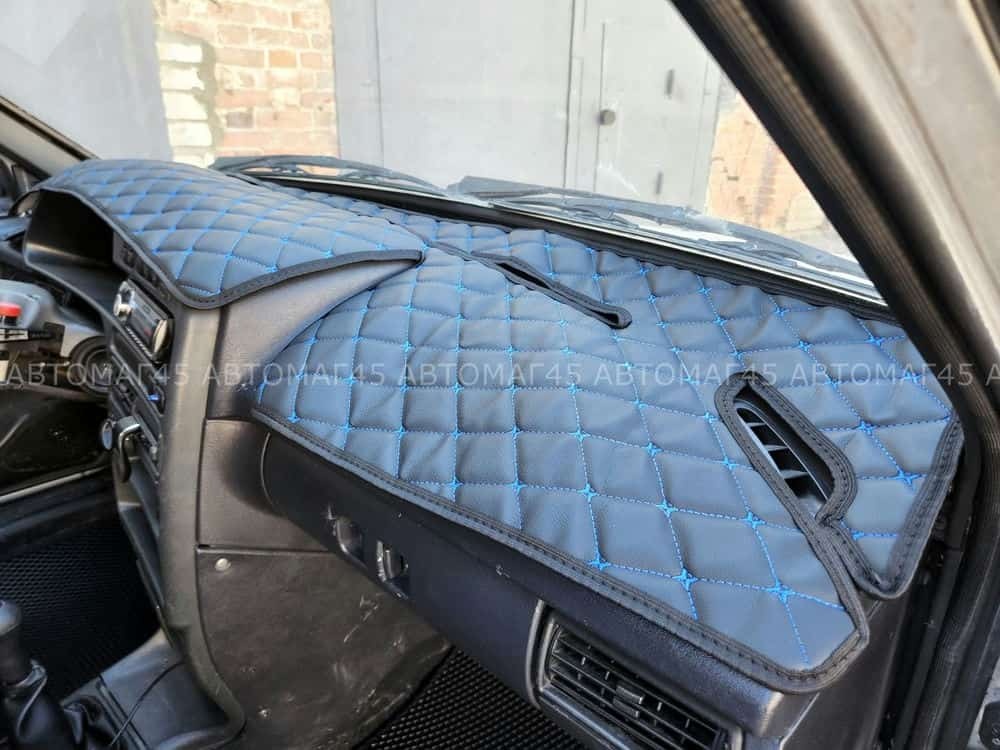 Накидка на панель ВАЗ 2114 2115 только европанель с синей ниткой экокожа