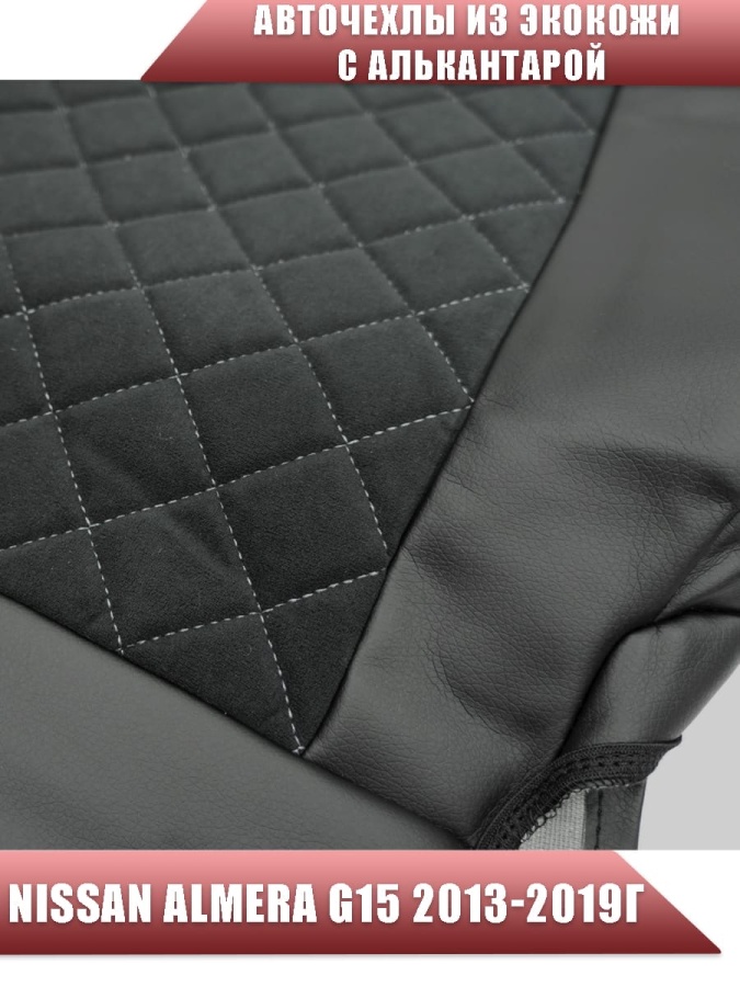Авточехлы Nissan Almera Ниссан Альмера 2013-2019г 2/3 экокожа алькантара черная серая нить ромб