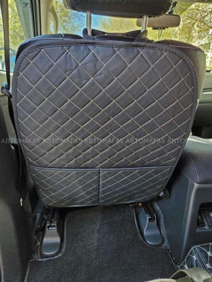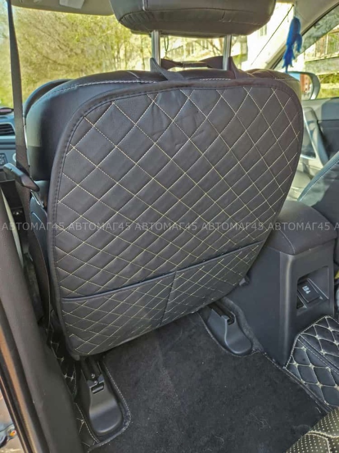 Maximal Защита заднего сиденья с карманом экокожа черная c бежевой ниткой ромб 62х49см JJ-39-BLBG