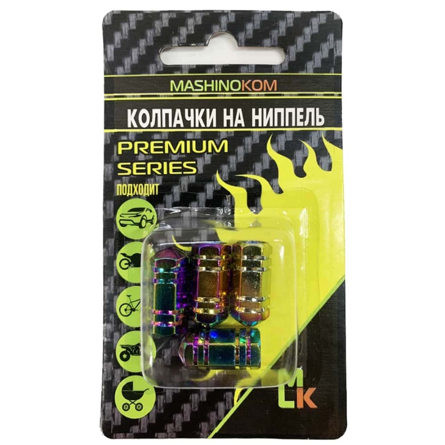Mashinokom колпачки на колесные вентили шестиугольный неон №2 металл 4шт