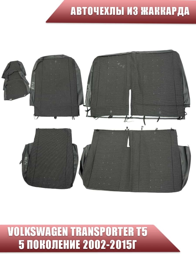 Авточехлы Volkswagen Transporter Транспортер T5 5 поколение 2002-2015г жаккард черный