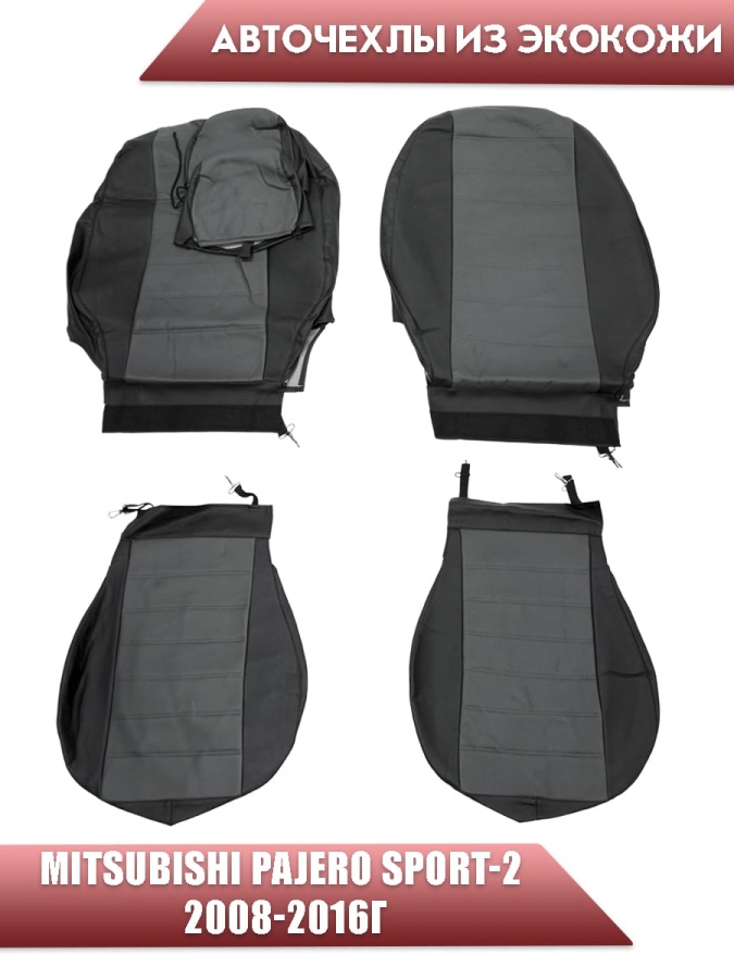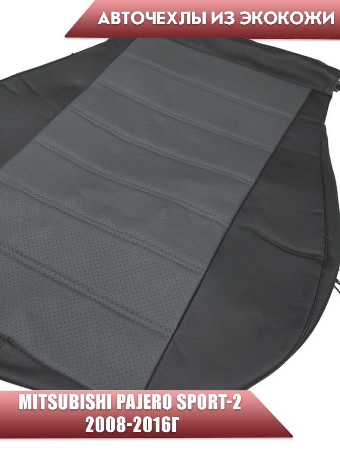 Авточехлы Mitsubishi Pajero sport-2 Мицубиси Паджеро спорт-2 2008-2016г экокожа черно-серый