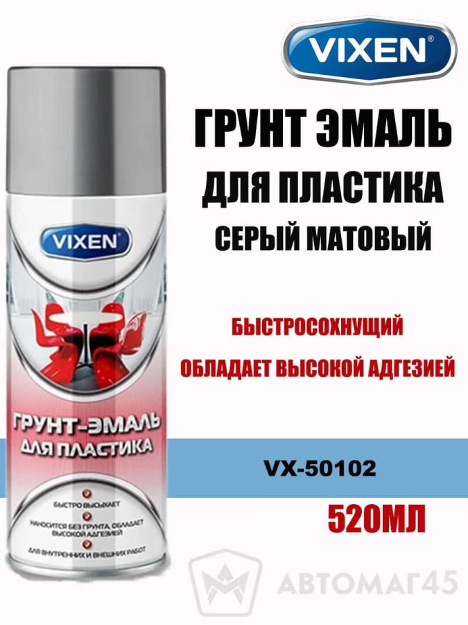 Vixen грунт эмаль для пластика серый матовый аэрозоль 520мл