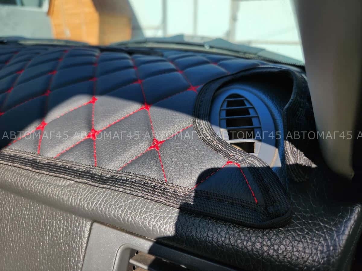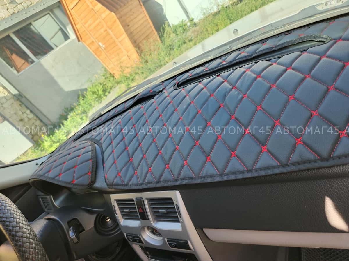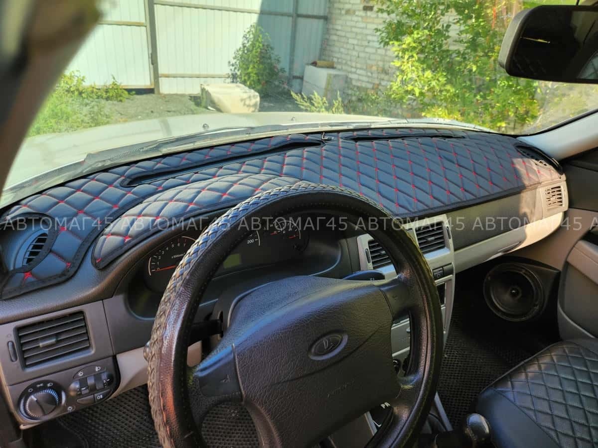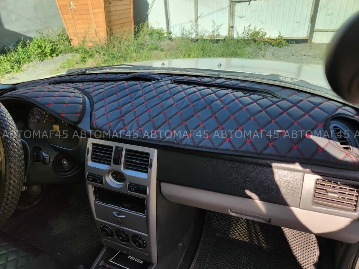 Накидка на панель Приора 1 2007-2014г с красной ниткой экокожа