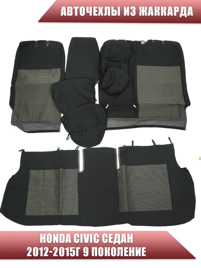 Авточехлы Honda CIVIC Хонда Цивик седан 2012-2015г 9 поколение жаккард черный-желтый СоюзАвто