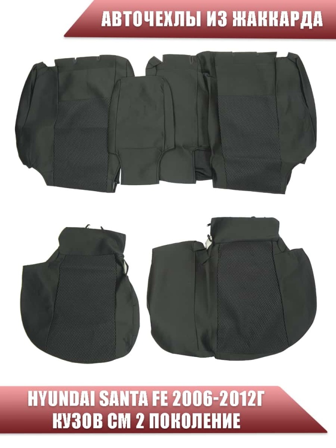 Авточехлы Hyundai Santa Fe II Хендай Санта Фе 2 2006-2012г кузов CM 2 пок. жаккард черный Союз-Авто