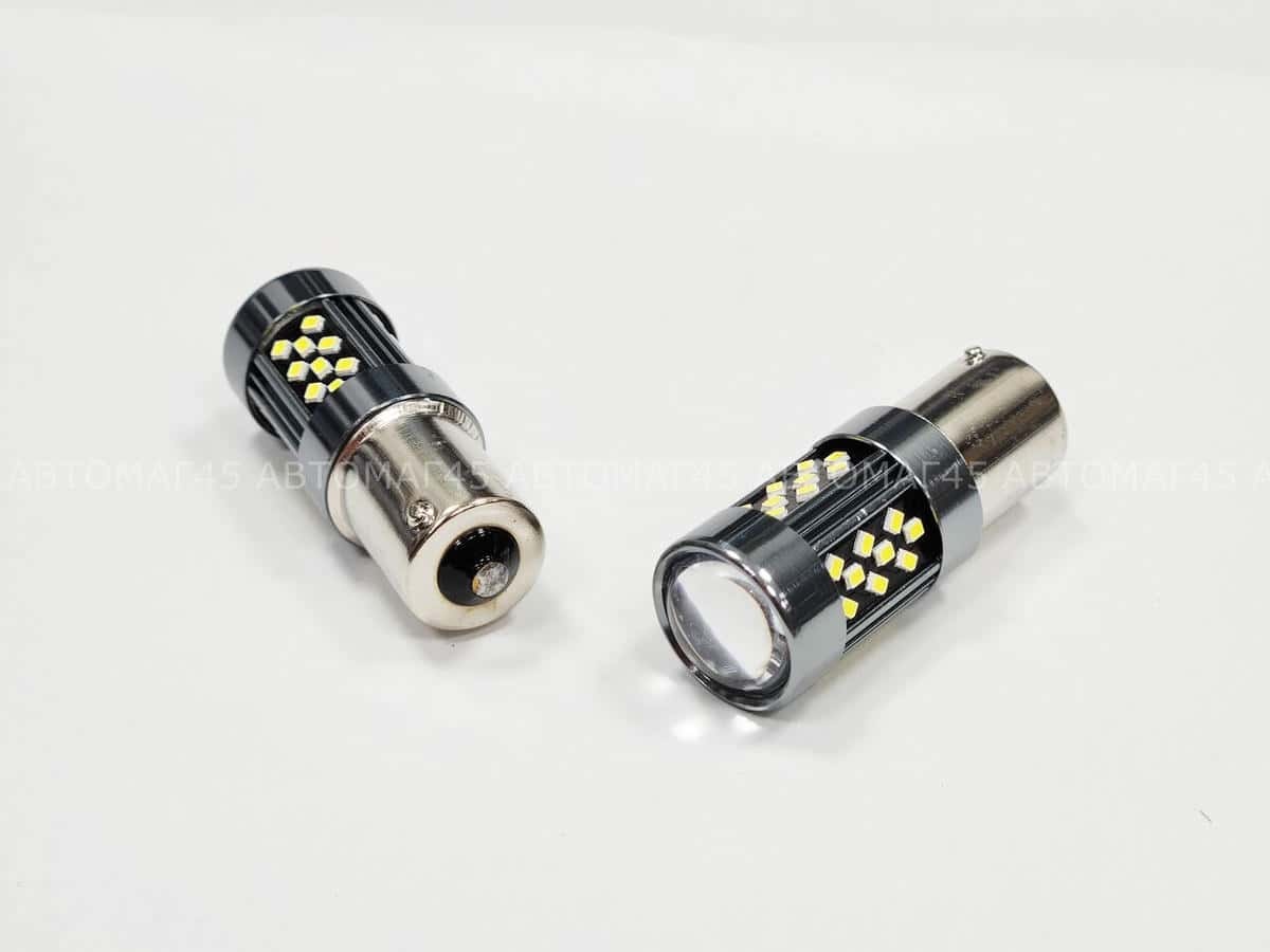 C2R лампа светодиодная P21W 42SMD линза c цоколем 5500K 550Lm одноконтактная белая 2шт S0072