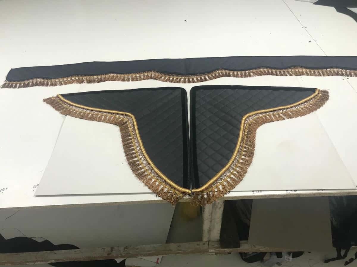 Шторки автомобильные ламбрекен Газель Газель Бизнес экокожа черные с синей ниткой ширина 150см компл
