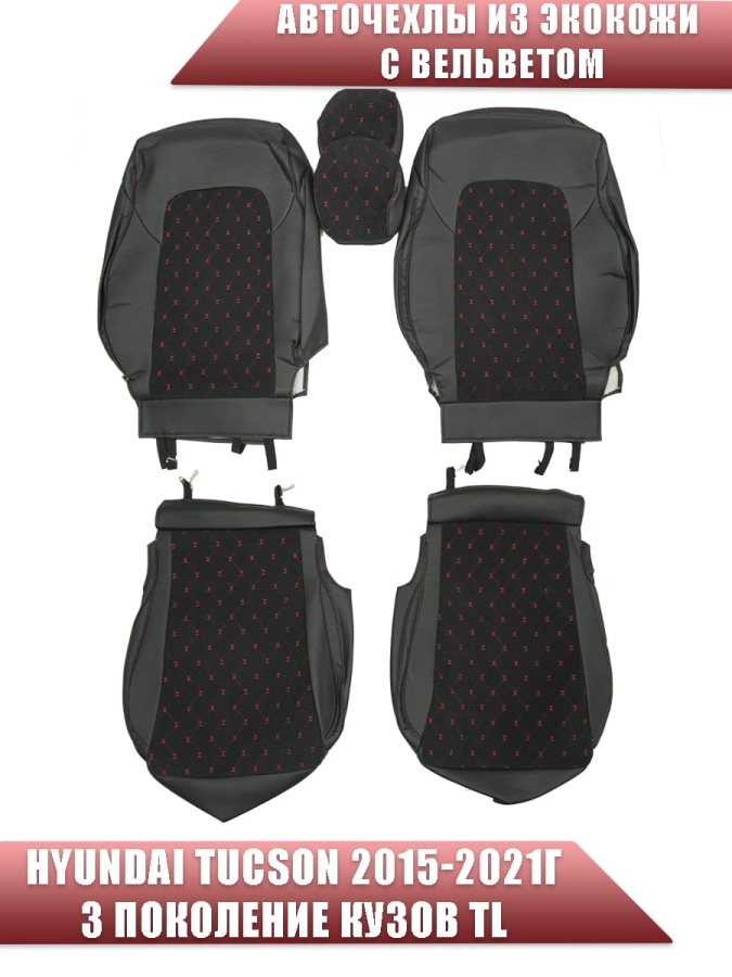 Авточехлы Hyundai Tucson 3 Хендай Туксон 3 кузов TL 2015-2021г экокожа вельвет черн.крас.нить ромб
