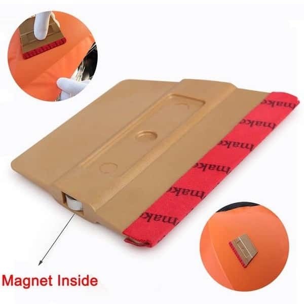 Выгонка ракель магнитный с магнитом внутри позволяет фиксировать инструмент на металлической поверхности, тем самым ускоряя процесс оклейки.