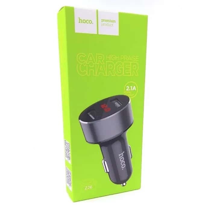 Hoco Z26 зарядное устройство в прикуриватель вольтметр + 2 USB 2.1 A