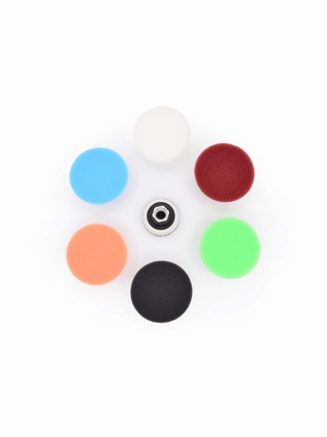 Белый круг предназначен для крупно абразивной пасты, оранжевый – универсальный (подходит по крупно абразивную и мелко абразивную пасту), синий – под мелко абразивную пасту, черный – для неабразивной и антиголограмной паст.
