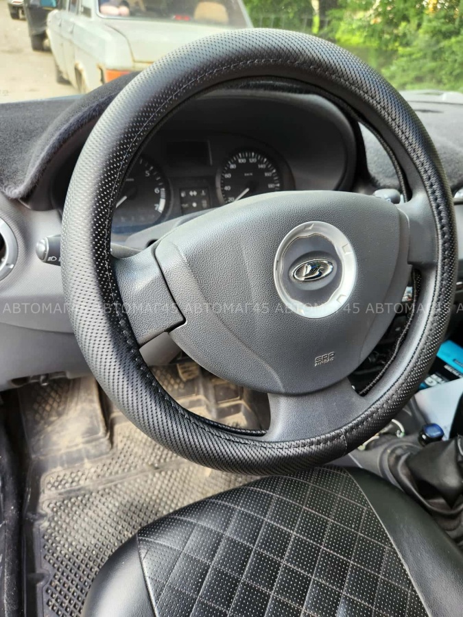 Оплетка на руль выполнена полностью из эко-кожи(имитация фактуры "карбон")
