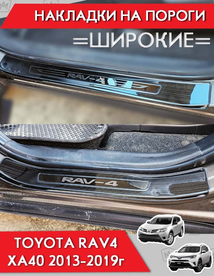 Накладки на внутр пороги Toyota RAV4 XA40 Тойота Рав4 ХА40 2013-2019г черные широкие алюминий 4шт