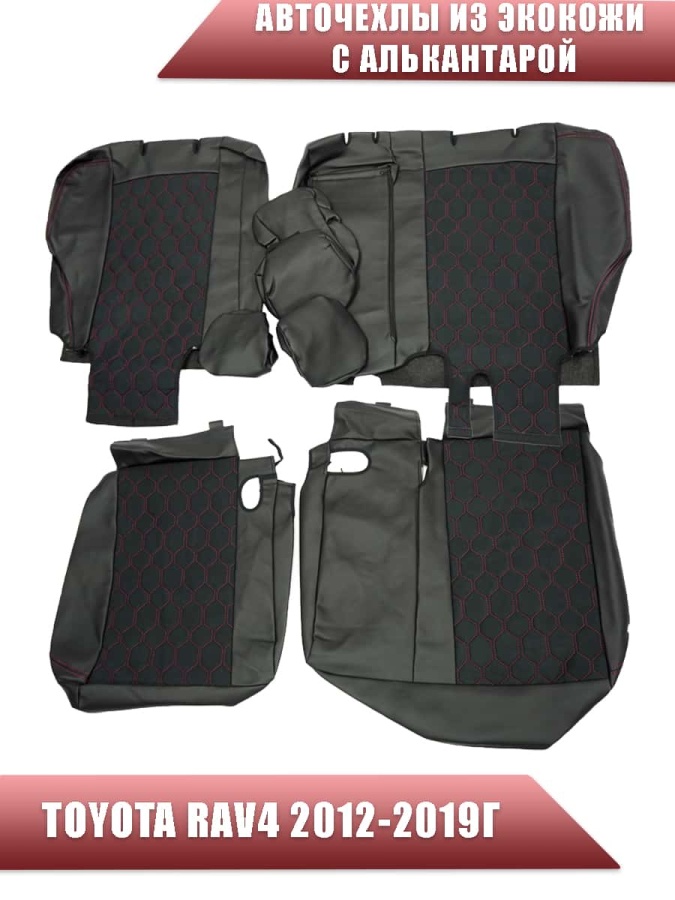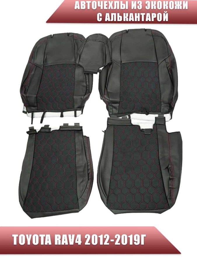 Авточехлы Toyota RAV4 Тойота Рав4 2012-2019г XA40 экокожа алькантара черная красная нить соты