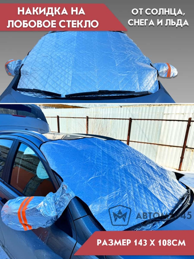 Накидка защитная от наледи и солнца на лобовое стекло 143см х 108см с ушами