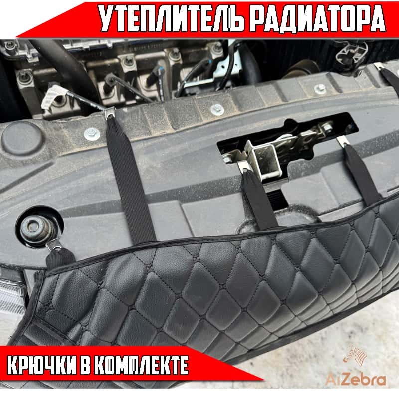 Универсальная система креплений в виде резинок и крючков позволяет надежно зафиксировать изделие, идеально повторяя контуры решетки радиатора.