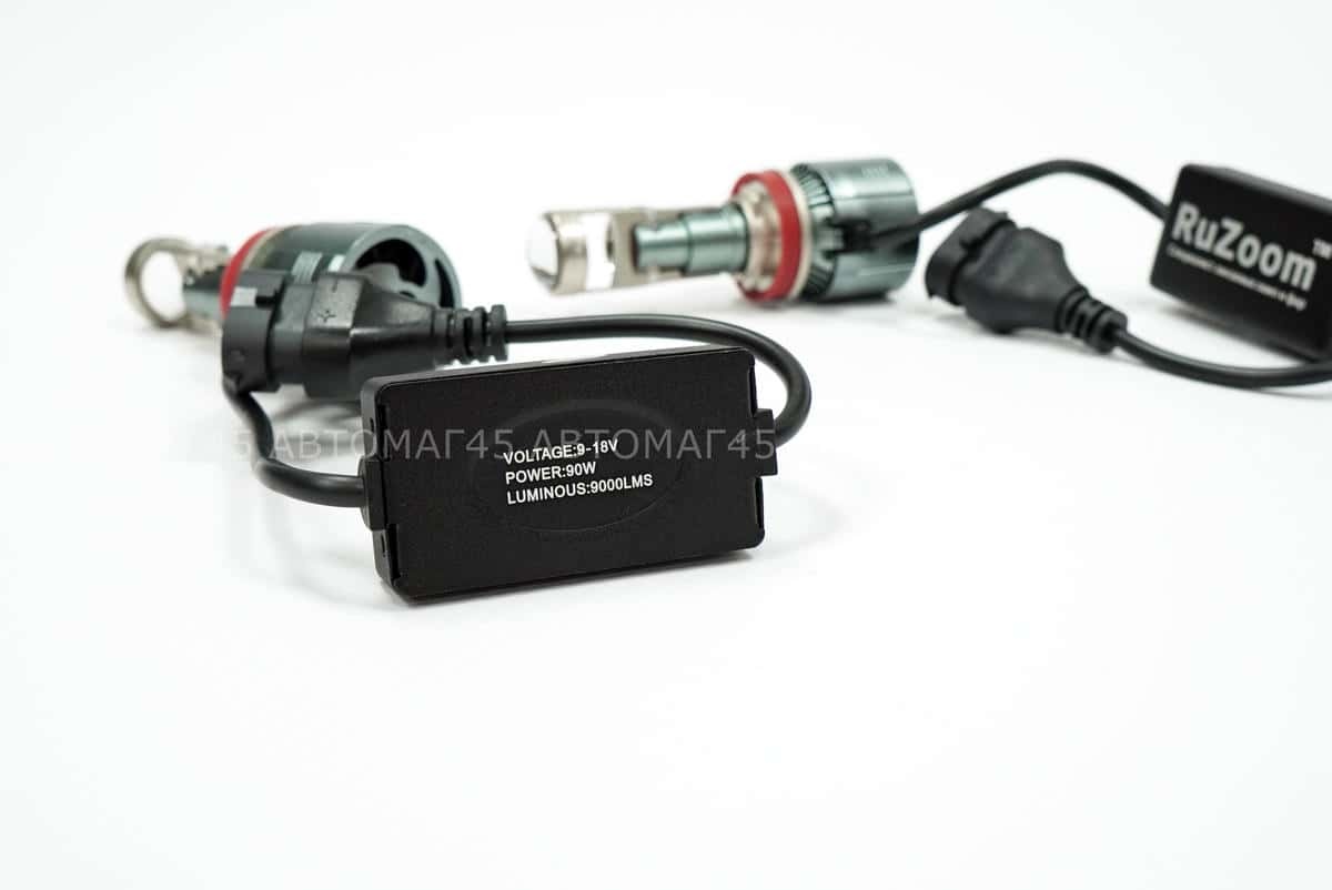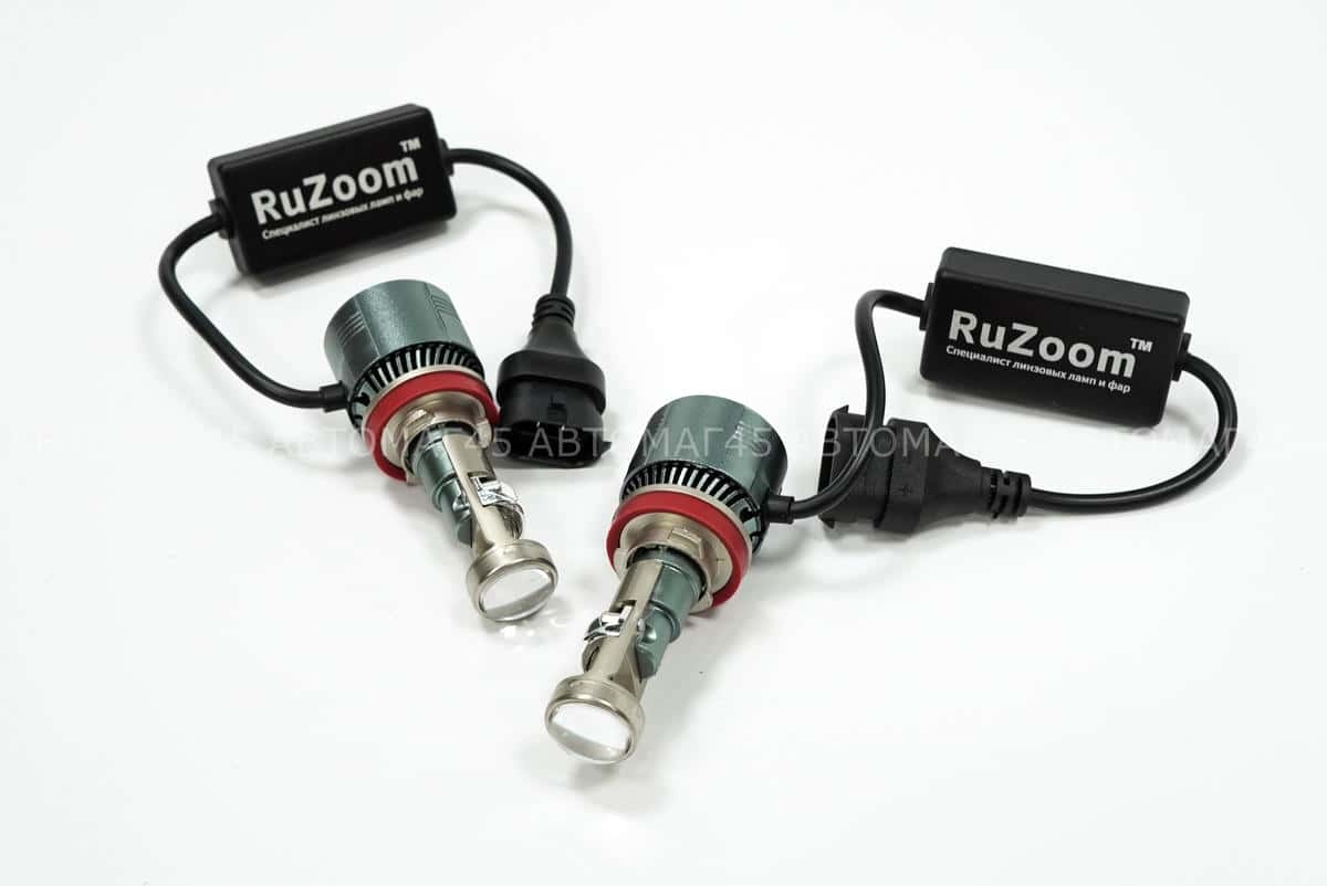 Ruzoom A80 светодиодные лампы LED линза модуль 2шт H11 12В 45W 5700K 4500Lm гарантия 6 мес