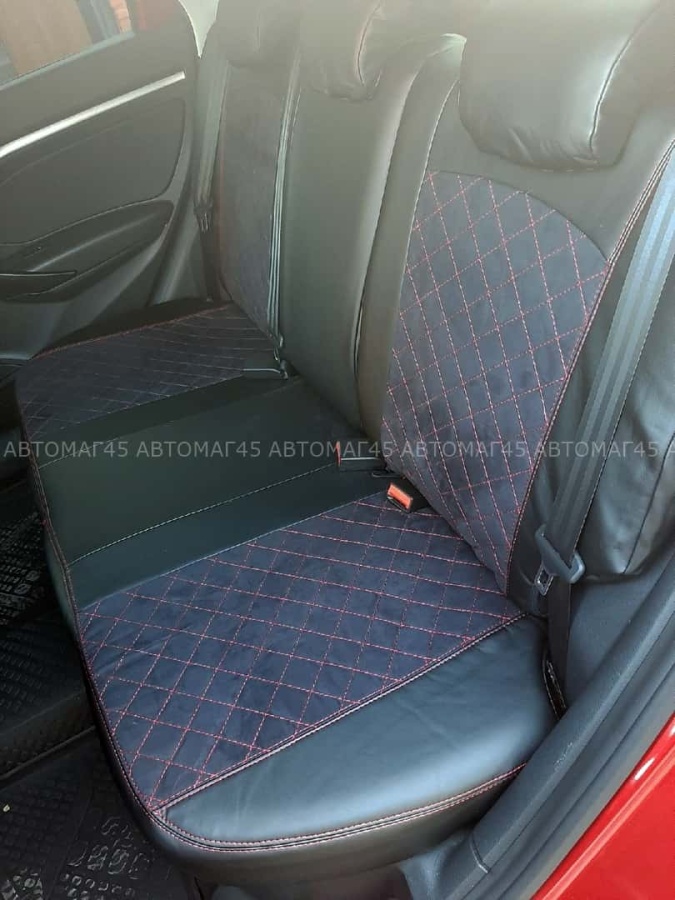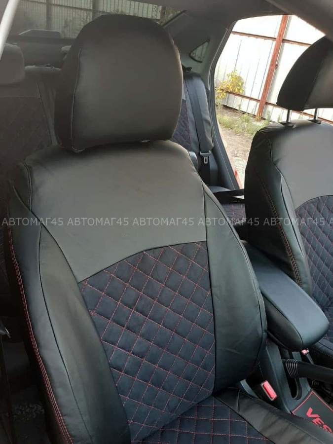 Авточехлы Lada Vesta Лада Веста седан SW SW Cross экокожа алькантара черная с красной ниткой ромб