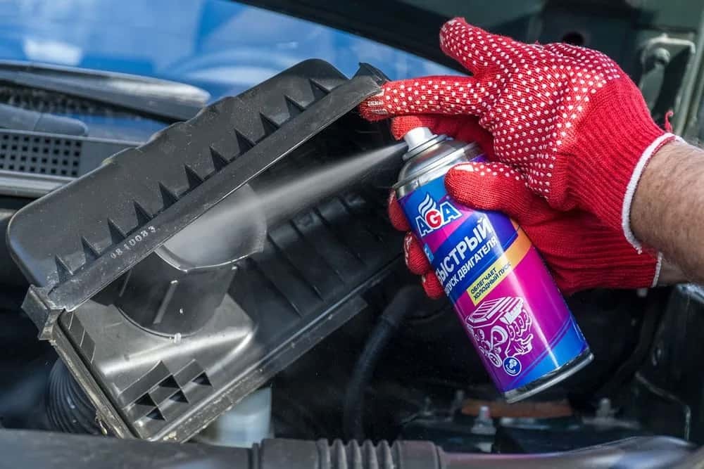 - Встряхните и распылите состав в течение 8–10 секунд в воздухозаборник двигателя.