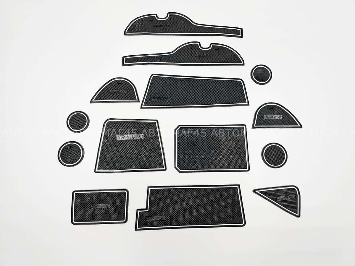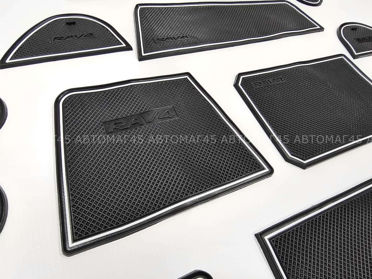 Коврики в ниши Toyota Rav4 2016-2019г черные белые буквы 14пр.