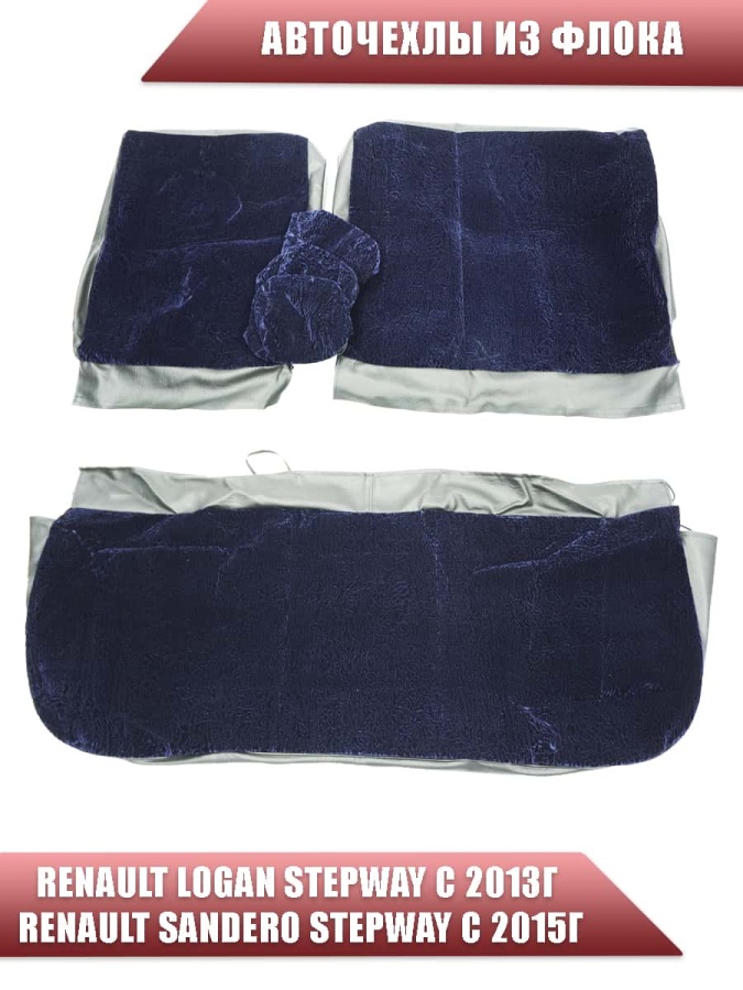 Авточехлы Renault Logan Stepway с 2013г Renault Sandero Stepway с 2015г 2/3 синий флок