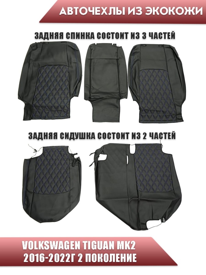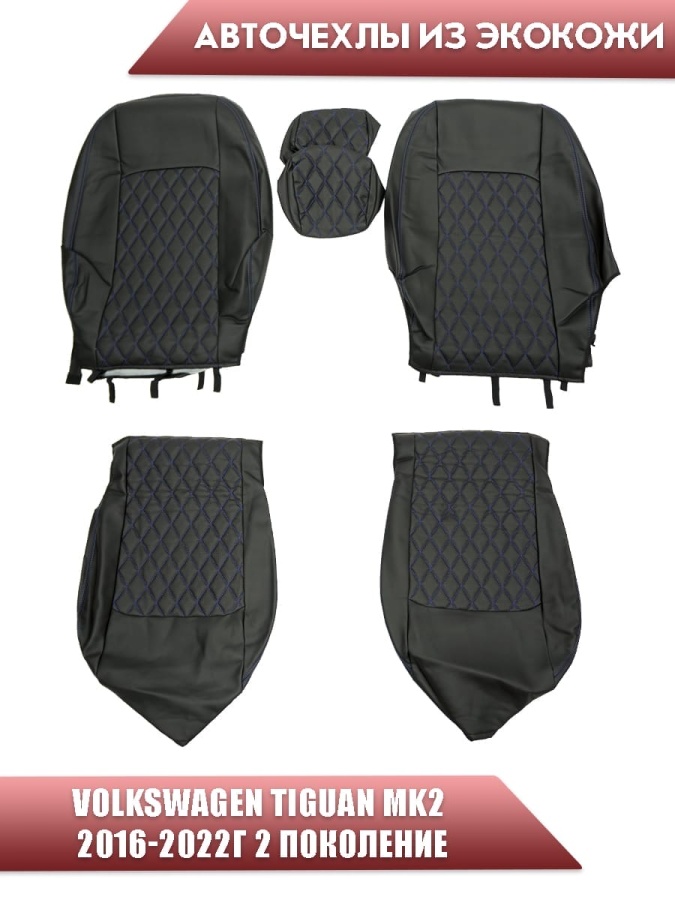 Авточехлы Volkswagen Tiguan Тигуан 2016-2022г экокожа черная синяя нить ромб