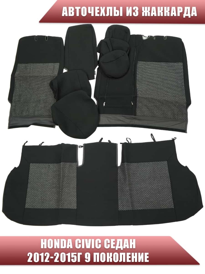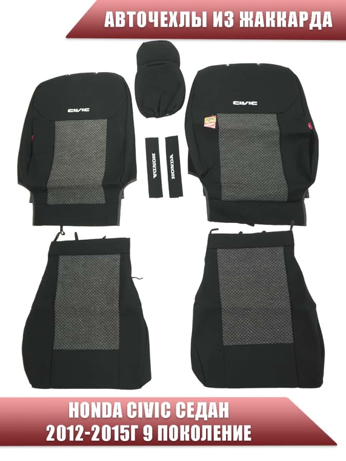 Авточехлы Honda CIVIC Хонда Цивик седан 2012-2015г 9 поколение жаккард черно-серый СоюзАвто