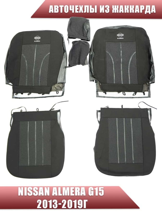 Авточехлы Nissan Almera Ниссан Альмера 2013-2019г 2/3 жаккард черно-белый
