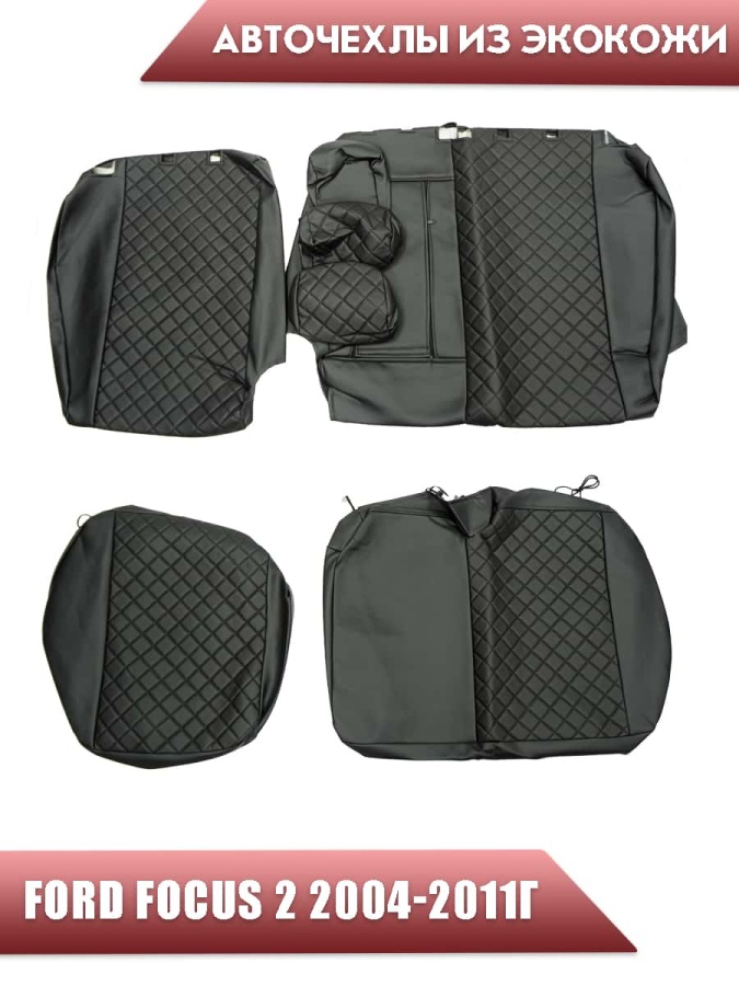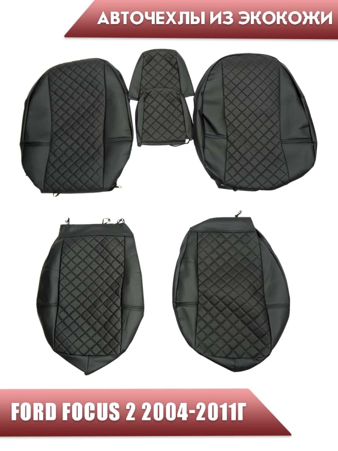 Авточехлы Ford Focus 2 Форд Фокус 2 экокожа черная черная нить ромб