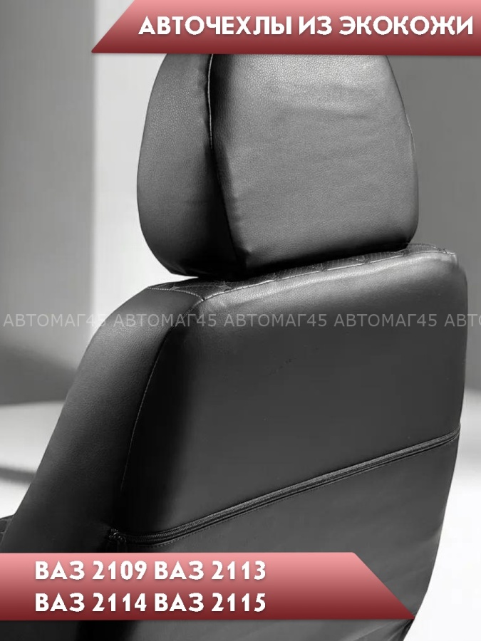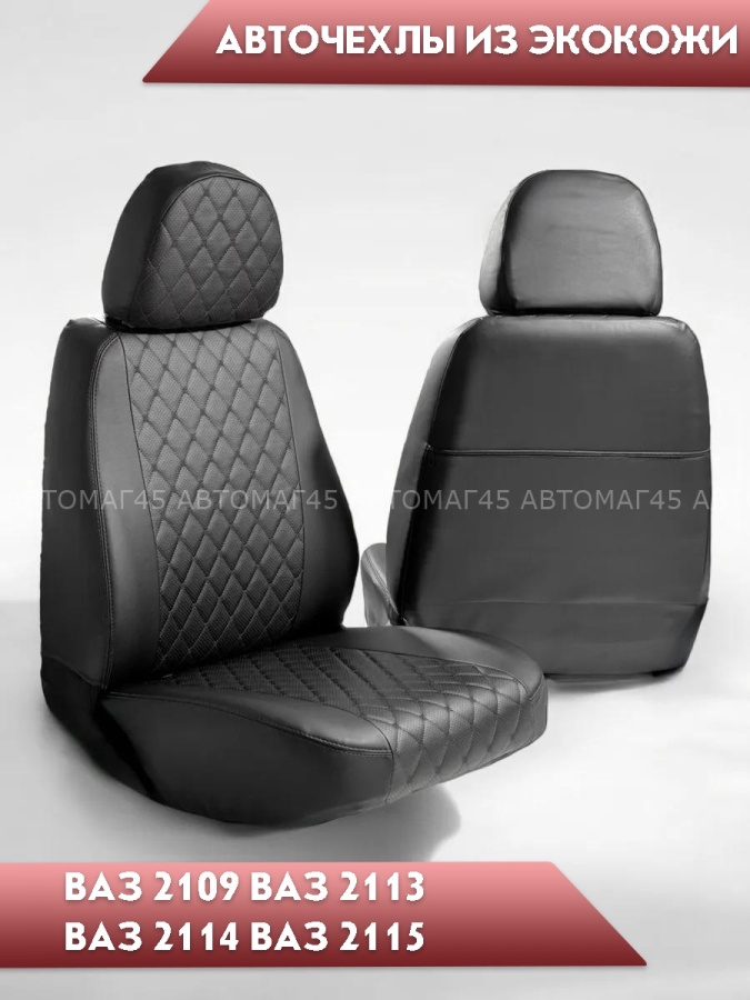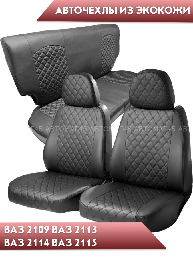 Авточехлы ВАЗ 2109 2114 2115 Нива пятидверная до 2019г экокожа черная с черной никой ромб Барс