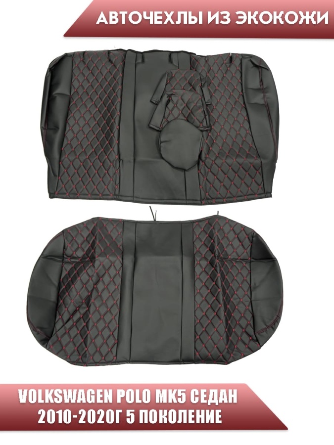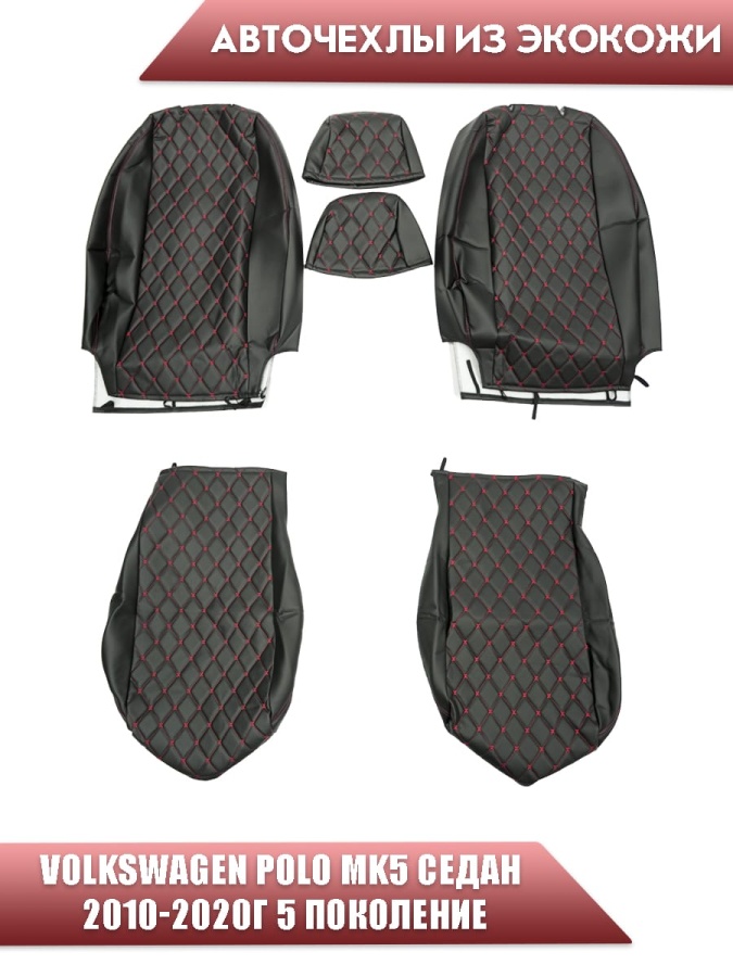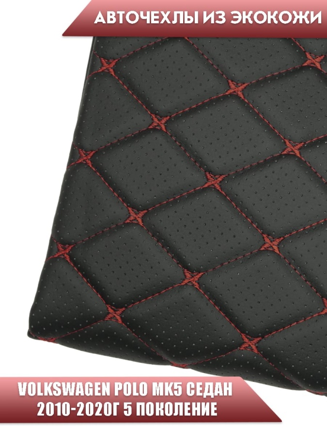 Авточехлы Volkswagen Polo Фольцваген Поло седан 1/1 2010-2020г экокожа черная нить красн ромб Барс