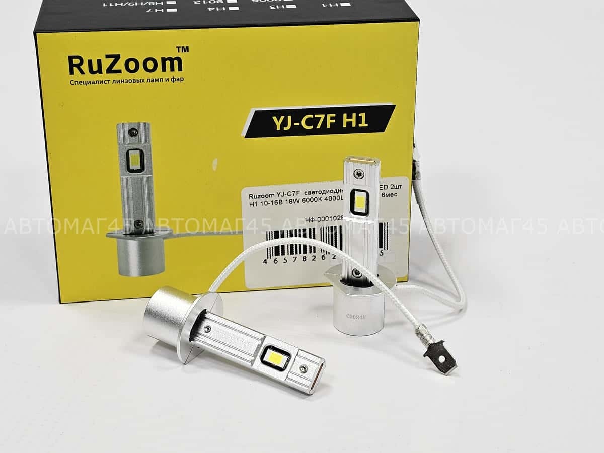Ruzoom YJ-C7F светодиодные лампы LED 2шт H1 10-16В 18W 6000K 4000Lm гарантия 6мес