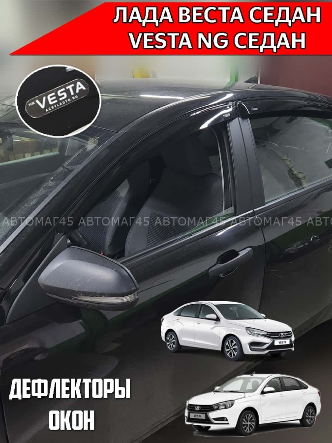VAD Дефлекторы на окна Ветровики Лада Веста седан 2015-н.в Lada Vesta NG 2022-н.в черные комплект